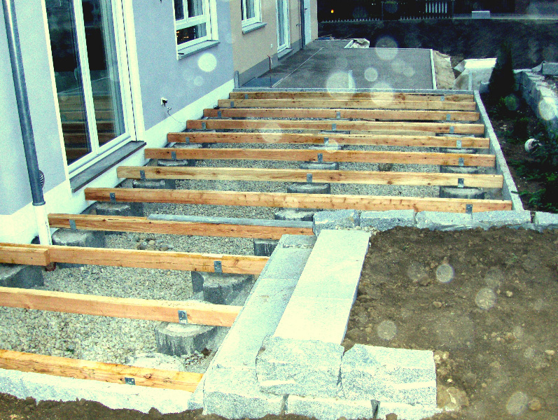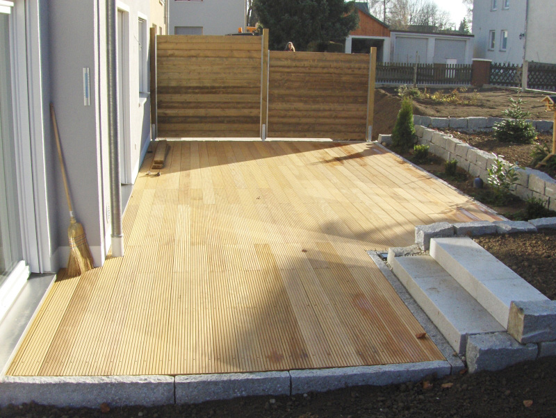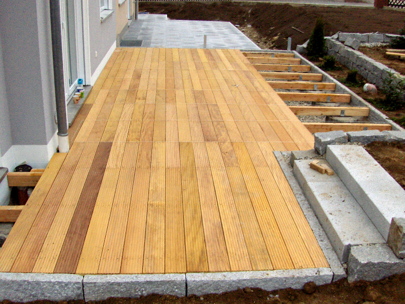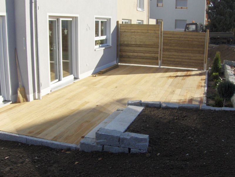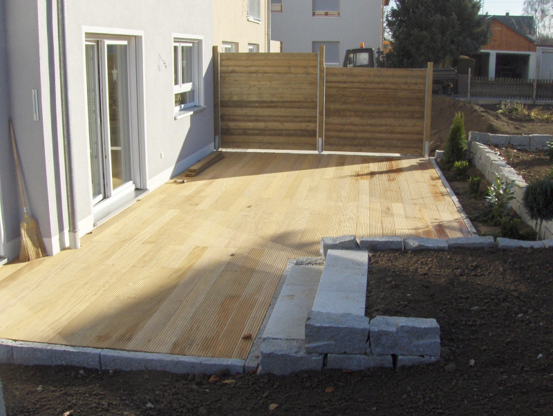 Holzterrassen oder Pergolen können auch mit Metall- oder Steinelementen vermischt werden, was die Bauwerke optisch leichter macht und durch Farbkontraste die Wirkung verstärkt.